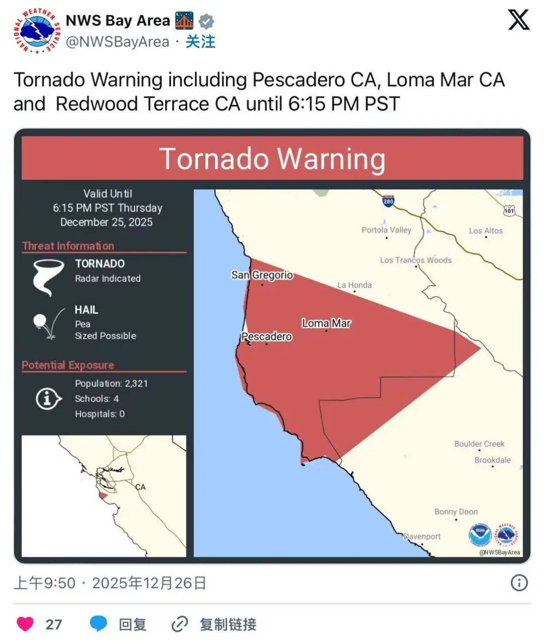 这场风暴不仅影响了湾区,整个加州都在圣诞期间受到了极端天气的影响,南加部分地区甚至还发生了几起伤亡事故。