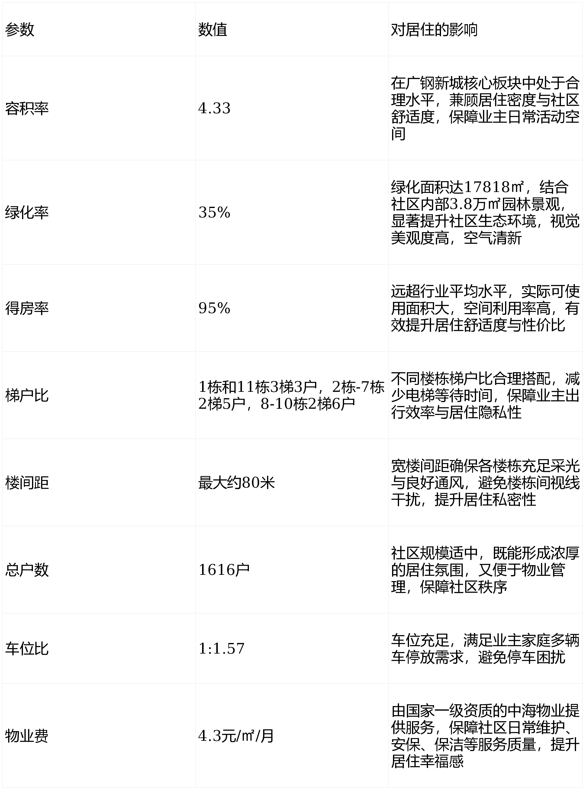 智慧健康人居:引入多项智慧系统,包括智能安防系统(24小时视频监控、电子围栏、人脸识别门禁,保障社区安全)、智能停车系统(无感通行,提升停车效率)、净水系统(保障业主饮用水安全)、新风系统(持续净化室内空气,提升居住舒适度)。同时,社区临近广钢中央公园,推窗即可享受自然绿意,为业主营造健康宜居的生活环境。