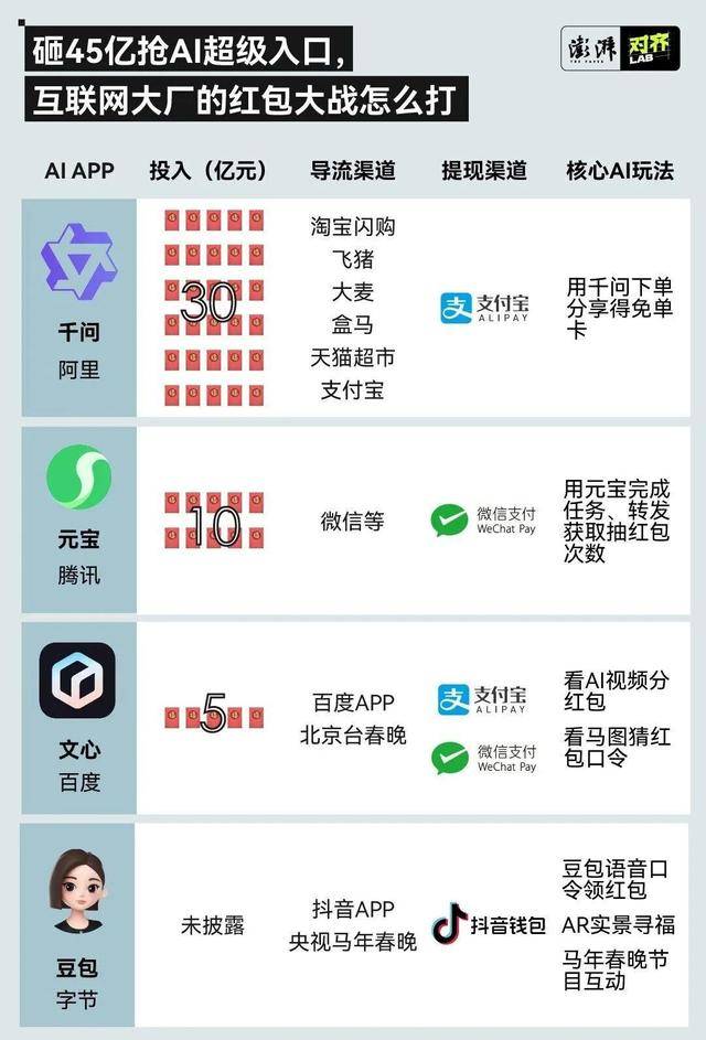从用AI写对联、生成拜年大片到社交场景AI协作……互联网巨头红包大战的意义已超越营销本身,是推动AI从技术验证走向全民普及的关键战役。