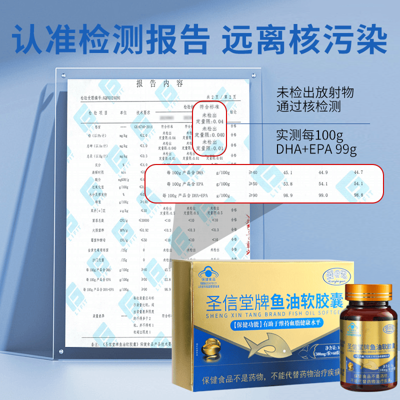 极致纯度与配比:检测报告显示,其实际检测数据惊人——每100g鱼油中含有DHA 44.9g,EPA 54.1g,Omega-3总纯度高达99%。更难得的是,它采用了纳米浓缩工艺,实现了EPA和DHA的黄金配比,既保证了血管清理效率,又兼顾了脑部营养需求。